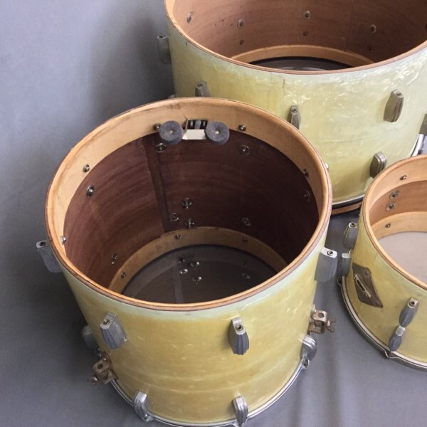 The Good : 24″ Virgin bassdrum sounds utterly stunning, full warm tone but punchy and massive all at the same time. All the edges are original and in good shape, Modern heads fit on all drums and tunes up well.