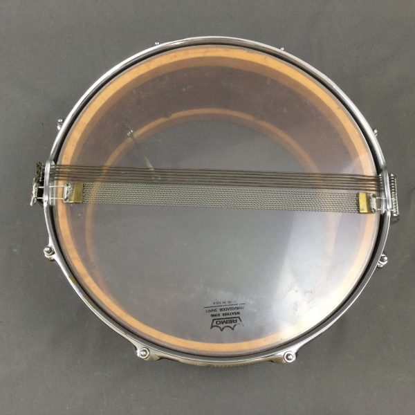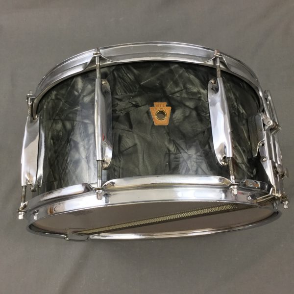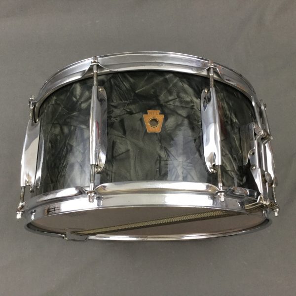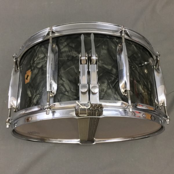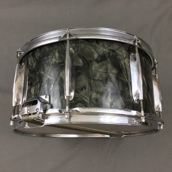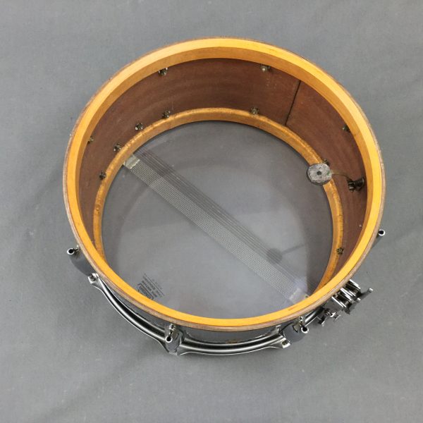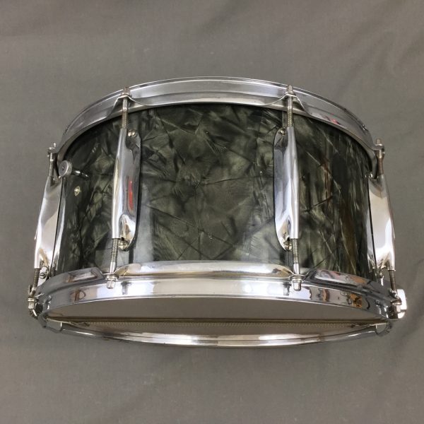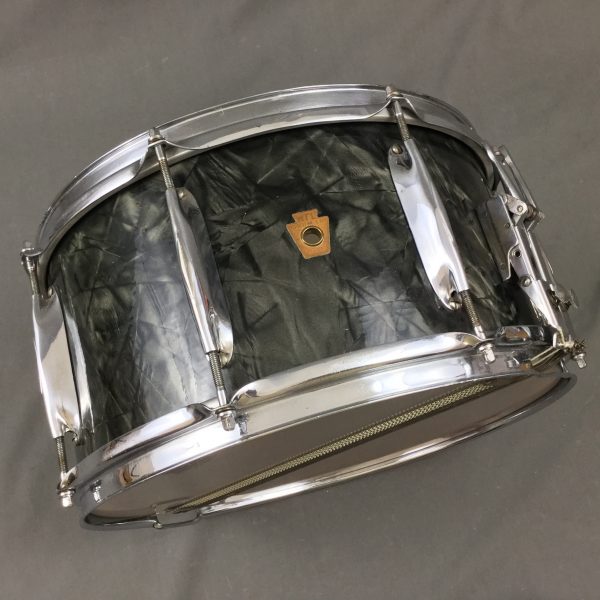 Late 30’s early 40’s, hard to pinpoint the exact date. This drum is in showroom condition, near mint!! The strange feature of the this drum is the strainer, on the Paramount model the strainer is usually a single this drum has a factory fitted twin. These are 3 ply shells but with a much thicker core ply than later drums of its type.Glossy BDP wrap and upgraded chrome plating, Great for a collection or to be played!